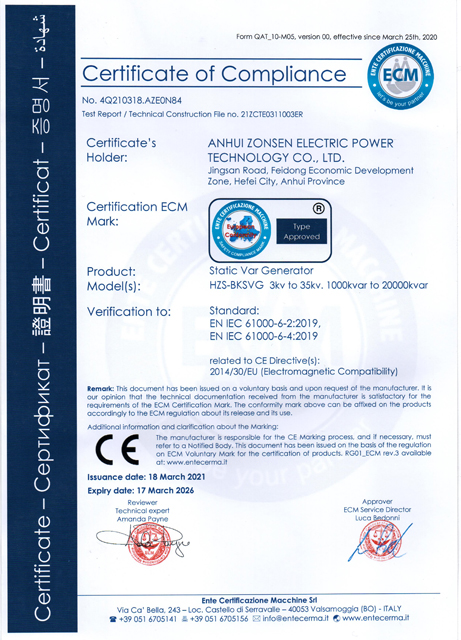 歐盟CE認(rèn)證(高壓無功補(bǔ)償裝置)